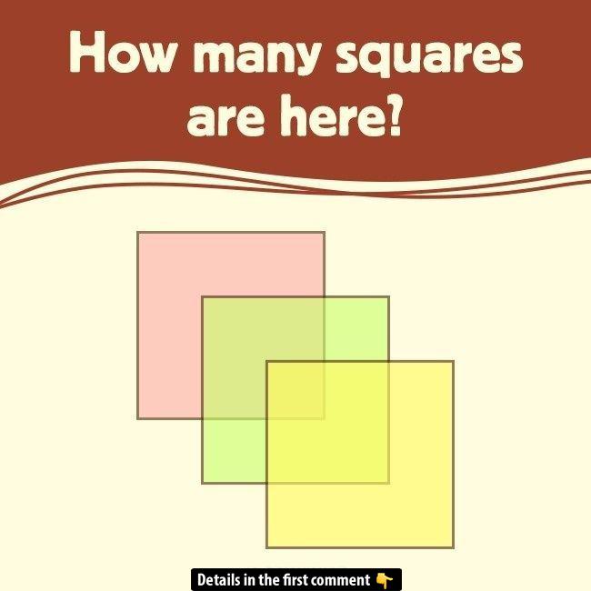 At first glance, you see three translucent squares—pink, green, and yellow—overlapping in a neat row. The challenge seems simple: “How many squares are here?” But appearances can deceive! Before snoozing on what looks like a child’s doodle, take a closer look and count every square you can find (yes, even the tiny ones).
