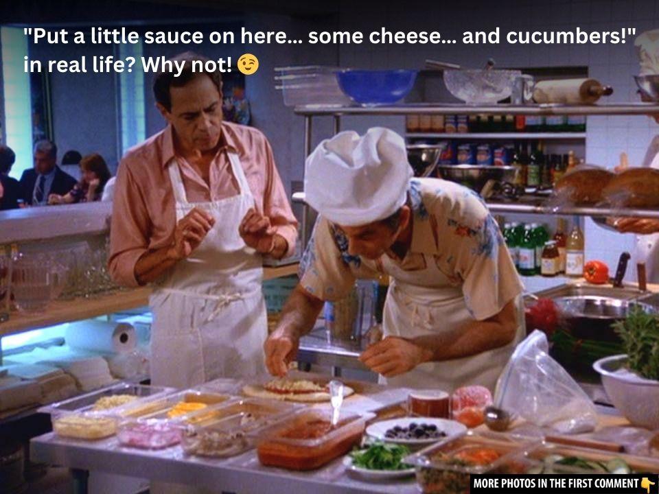 Later, in Season 6’s episode “The Couch,” Kramer came closer than ever to realizing his dream. He partnered with Poppie, an Italian restaurateur, to bring the concept to life. However, the venture collapsed in spectacular Seinfeldian fashion due to a heated dispute over whether cucumber qualifies as a pizza topping. The scene became an allegory for the abortion debate, with Kramer advocating for customer choice and Poppie taking a more traditionalist stance.
